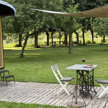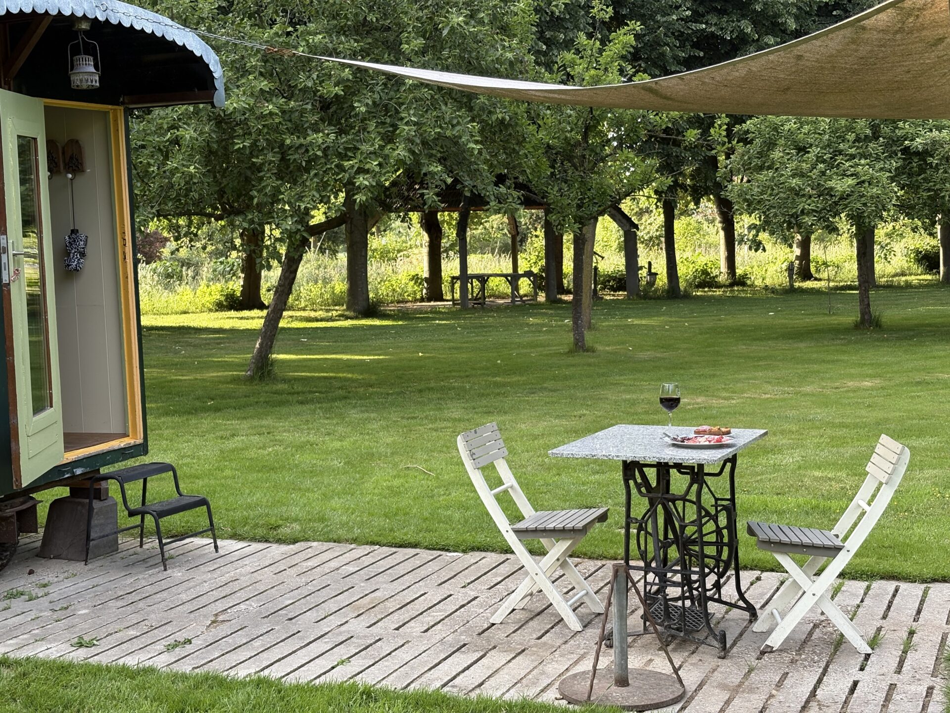In de loop van de jaren heb ik een ware Buroofzo Werkmethode ontwikkeld. Die van Workation. Bur-off-duty. Zoiets. Nederland is prachtig. Mijn werklocaties zijn prachtig. Dus waarom niet een leuk, betaalbaar, verblijf boeken waar ik kan koken, vrienden kan ontvangen en ’s avonds lange wandelingen kan maken? Ik leer de gemeente beter kennen dan vanachter mijn bureau. En dan werk ik op dit moment ook nog ’s in het heuvellandschap van Berg en Dal, in het gemeentehuis in Groesbeek met uitzicht op een ijssalon. Eén van de workation-locaties is camping De Zoete Aagt. Een paradijsje in Franse sfeer, in een pipowagen die in een appelboomgaard ligt.